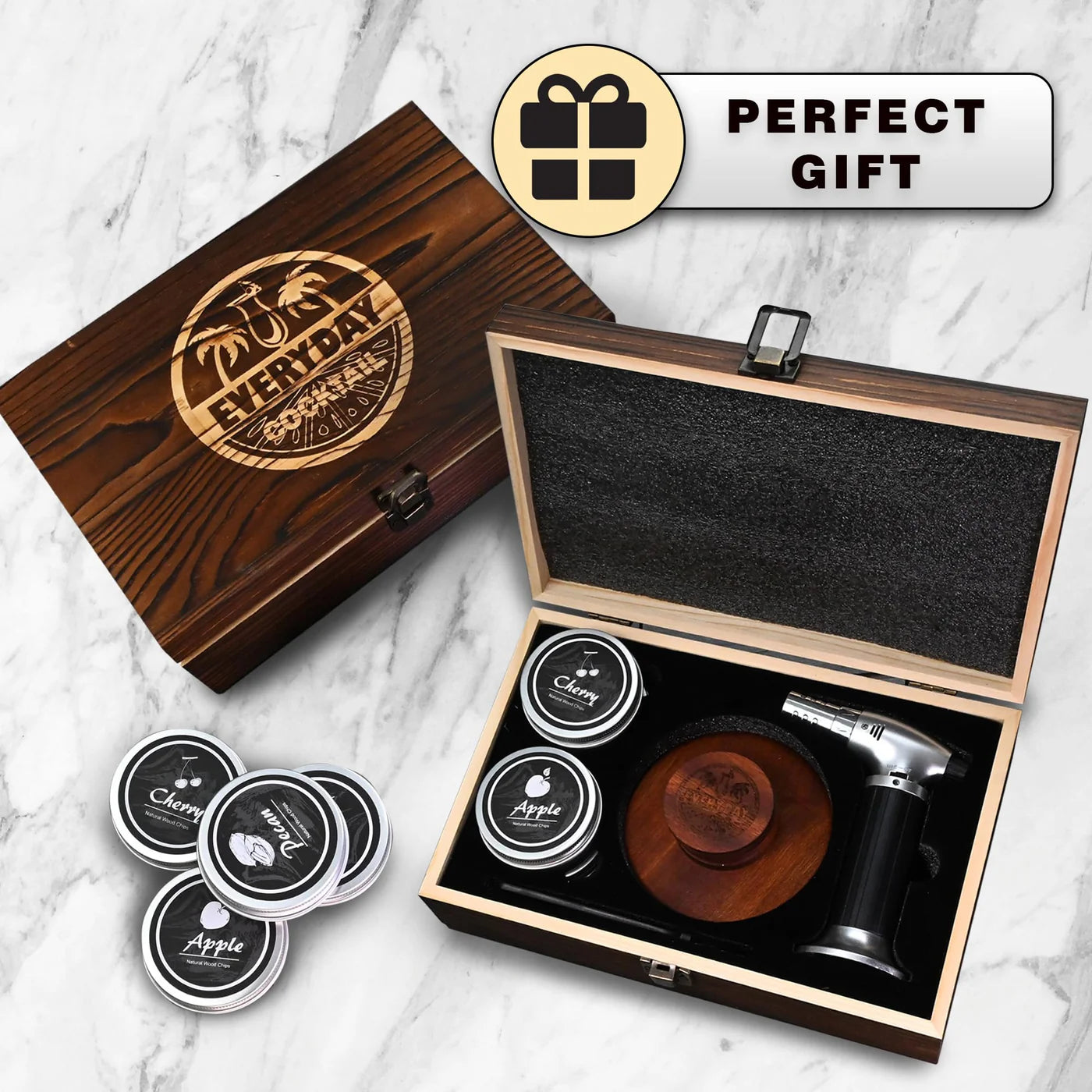 Whiskey Smoker Kit with Torch – 4 Wood Chips & Wooden Box